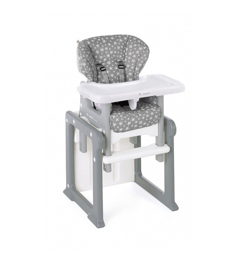 Más que una trona, es una compañera de juegos. Se convierte fácilmente en mesa y silla para que tu peque pueda dibujar o jugar después de comer. Ofrece cuatro inclinaciones de respaldo y tres posiciones de bandeja.