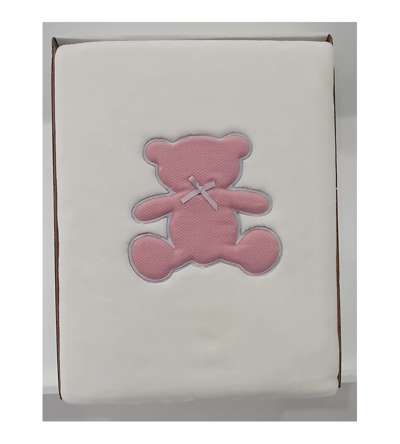 Manta de cuna D’peques bordada oso lazo: manta de cuna de terciopelo con aplique de oso. Calentita, suave y cómoda, perfecta para proteger a tu bebé del frío.