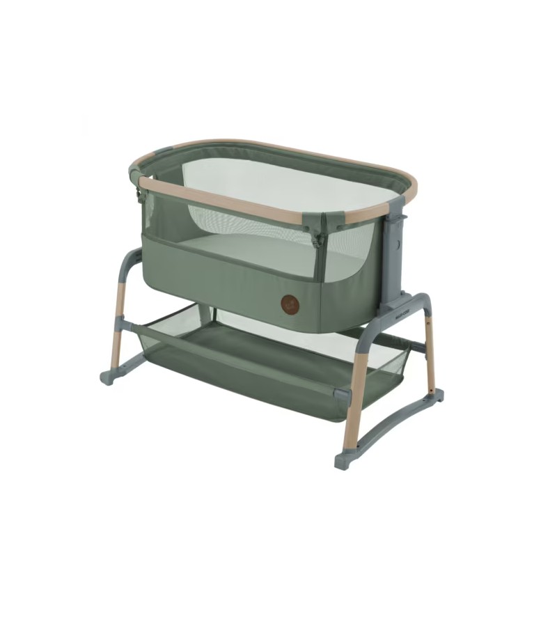 Minicuna de colecho con diseño elegante, altura ajustable y cesta inferior. Cómoda y ventilada, ideal para mantener al bebé cerca por la noche.