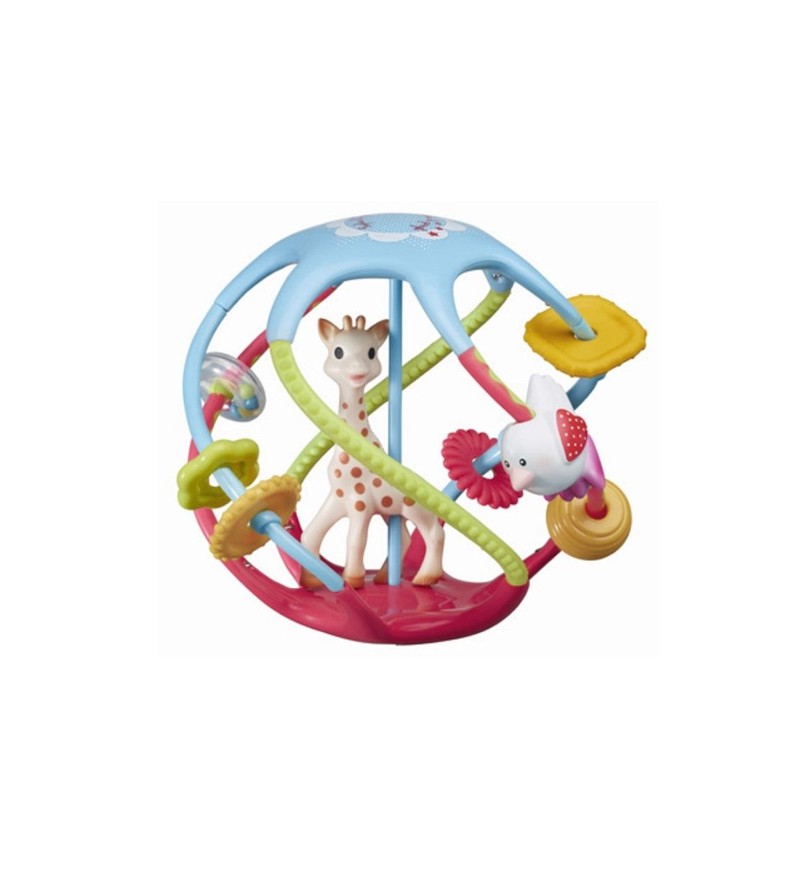 - Deja que la Twistin´Ball Sophie La Girafe le siga a lo largo del desarrollo de sus sentidos. Jugará con sus numerosos elementos, totalmente seguros de morder y usar. Con sus sonidos querrá agitar, tirar y coger la pelota hasta cansarse y podrá ver con fascinación como Sophie gira y los anillos se mueven y tintinean.