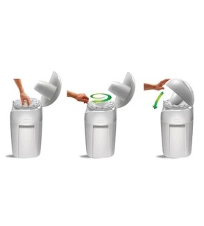 Un práctico contenedor de pañales usados que cambio de pañal aísla los malos olores y los gérmenes y evita viajes al cubo de la basura con un solo giro de muñeca ningún otro contenedor de pañales mantiene bajo control los malos olores y gérmenes de forma tan efectiva.
