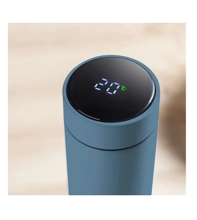 Termo de líquido con termómetro LED integrado en la tapa, útil para verificar la temperatura del líquido contenido en cualquier momento.