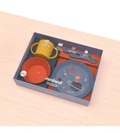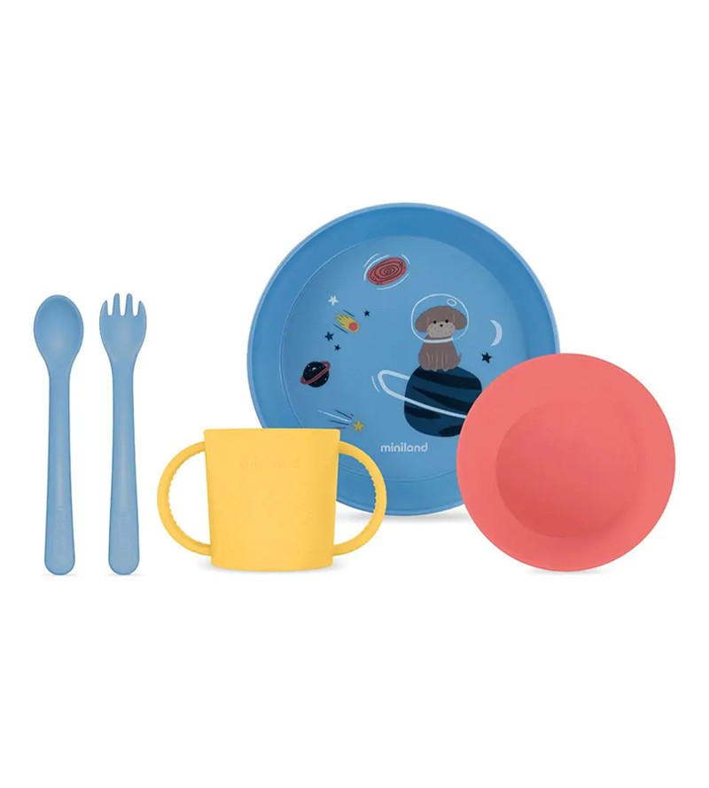 Completa vajilla infantil, diseñada especialmente para que los más pequeños disfruten aprendiendo a comer solitos de manera divertida . Este set incluye todo lo necesario: plato con un valiente perrito explorador , bol con bordes elevados para evitar derrames , cuchara y tenedor con bordes redondeados y una taza de aprendizaje.