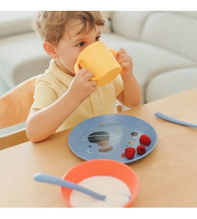 Completa vajilla infantil, diseñada especialmente para que los más pequeños disfruten aprendiendo a comer solitos de manera divertida . Este set incluye todo lo necesario: plato con un valiente perrito explorador , bol con bordes elevados para evitar derrames , cuchara y tenedor con bordes redondeados y una taza de aprendizaje. La taza cuenta con asas ergonómicas que aseguran un agarre cómodo y seguro. ¡Es la opción ideal para fomentar la independencia de tus hijos en la hora de la comida!