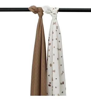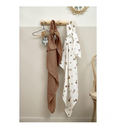 El juego consta de 2 muselinas de 120x120 cm. 100% algodón: super suave, buena absorción de la humedad y secado rápido. Duradero gracias a su multifuncionalidad. Mantén tu arrullo hidrófilo bonito durante más tiempo.