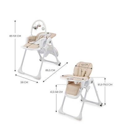 Trona y hamaca con reductor Arco con 2 juguetes Bandeja con tablero extraíble Regulación de altura para ajustarse a la mesa