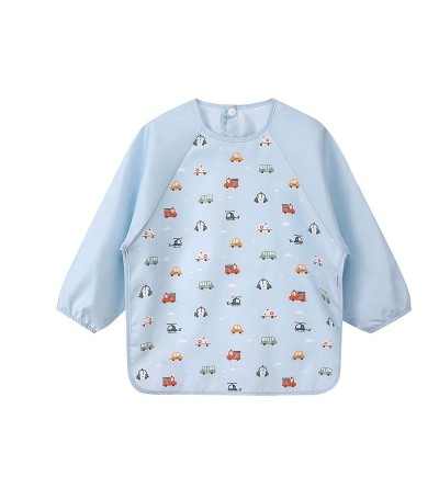 Fabricado en poliéster con acabado waterproof, lo que evita que líquidos y restos de comida traspasen. Ideal para el día a día, tanto en casa como en la guardería, su diseño con mangas largas ofrece una cobertura completa, evitando manchas en brazos y pecho.