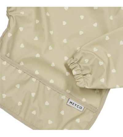 El babero con mangas Meyco Baby es adecuado para niños de 4 a 18 meses. El exterior está fabricado en 100% poliuretano y el interior en 100% poliéster. Esto hace que sea completamente impermeable y muy fácil de limpiar.