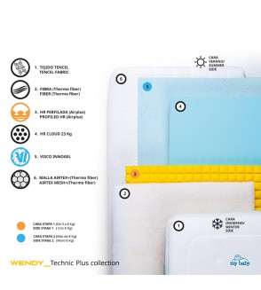 Wendy es un colchón de My Baby Mattress su espuma es suave y perfilada y la visco se adaptan al cuerpo y la cabeza del bebé.