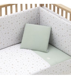 Juego de 2 piezas para vestir la cuna, compuesto por colcha invierno/verano más protector incluye un bonito cojín.