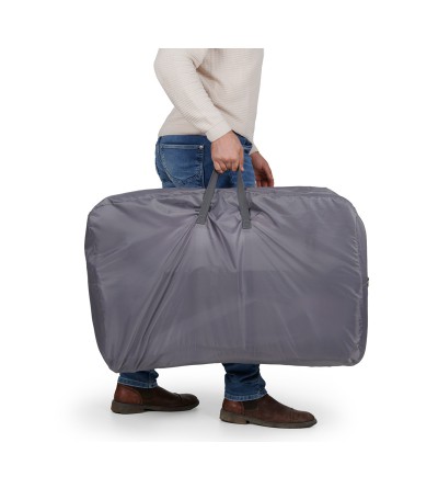 Incluye colchón de máximo confort muy transpirable y mosquitera de serie. Además, tiene una bandeja en la parte inferior para tener todo lo necesario a mano.