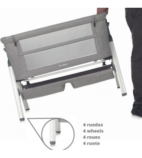 Minicuna Colecho Jané Baby Next es apta para todo tipo de camas y gracias a sus cuatro ruedas ocultas te será muy fácil desplazarla cuando lo necesites. Tiene chasis ultraligero 100% aluminio y tapizado extraíble que facilita su limpieza.