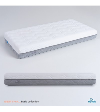ajusta con gracia a los movimientos naturales de tu bebé. Mientras tanto, el sistema de dos caras no solo ofrece una solución práctica, sino también la garantía de un descanso de alta calidad que perdura desde los primeros días hasta el emocionante paso hacia la cama de mayores. El colchón Bertha combina la tradición de los muelles Bonell con la modernidad de un diseño de doble cara. Cada aspecto ha sido cuidadosamente considerado para brindar una experiencia de sueño excepcionalmente cómoda y adaptable para tu bebé en crecimiento.