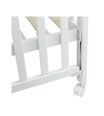 Cuna de color blanco o blanco/natural, fabricada íntegramente en madera.