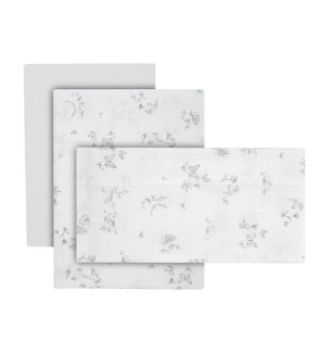 El set está compuesto de sábana encimera, sábana bajera y funda para almohada.
