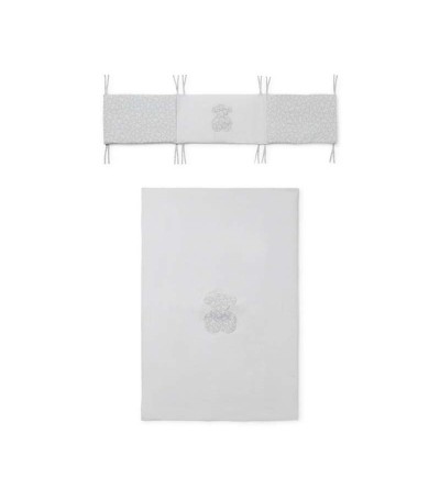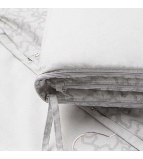Juego de cuna TOUS Baby 3 piezas: protector de barrotes, funda nórdica y relleno nórdico. Confeccionado en suave algodón liso y estampado kaos. Para cunas de 120x60.