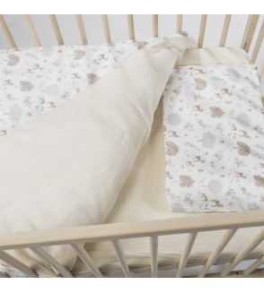 Set completo para cuna de 120×60 cm Nara de Pasito a Pasito: edredón, funda, sábana bajera y almohada.