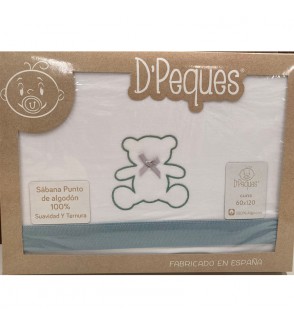Tríptico sábanas de punto 100% algodón para cuna estándar de 60x120 cm D'Peques. Fabricado en España.