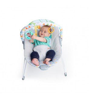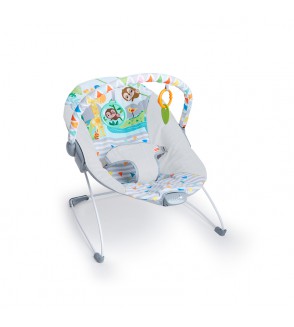 ¡Viaja a una jungla de mimos y comodidad! Diseñada tanto para vivir mil aventuras, como para disfrutar de una cómoda siestecita. El bebé lo pasará genial con los dos juguetes colgantes de su arco de juegos extraíble. Esta hamaca ayuda a tu animalito a relajarse con movimientos y vibraciones relajantes. Y como la seguridad es lo primero, cuenta con patas antideslizantes y arnés de tres puntos.
