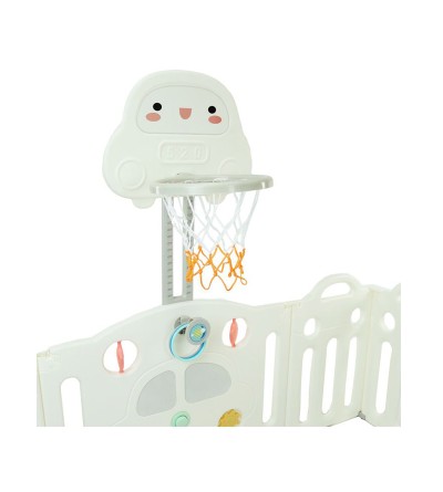 Alta Calidad y Seguridad: El paque infantil está fabricado y testado según la normativa europea EN 71, con materiales sin BPA, no tóxicos y respetuosos con el medio ambiente que los niños pueden utilizar de forma segura. La puerta del parque se ha realizado con ideas aportadas por los padres y tiene un cierre basculante con una cerradura de seguridad. Completo Incluye canasta, pelota de baloncesto y aros de juego.