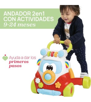 PRIMEROS PASOS: Un divertido andador de actividades 2 en 1 con estilo hippie fabricado en plástico reciclado.