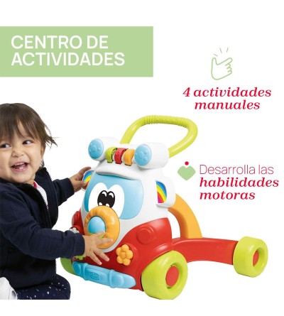 CENTRO DE ACTIVIDADES: Cuenta con un panel central de actividades manuales para entretener a los más pequeños no solo dando sus primeros pasos, sino para desarrollar otras habilidades cognitivas.