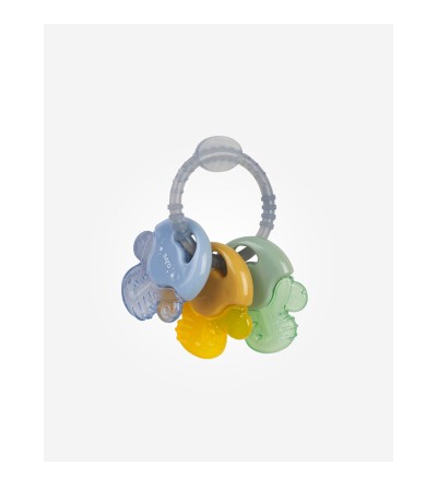 Tres mordedores en uno. Podrás darle todas las llaves a tu bebé o cada una de las piezas por separado gracias a la apertura de su anilla central.
