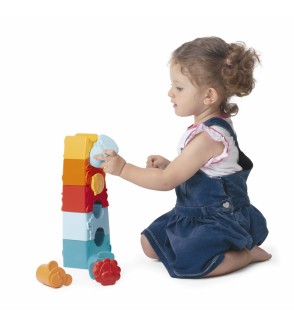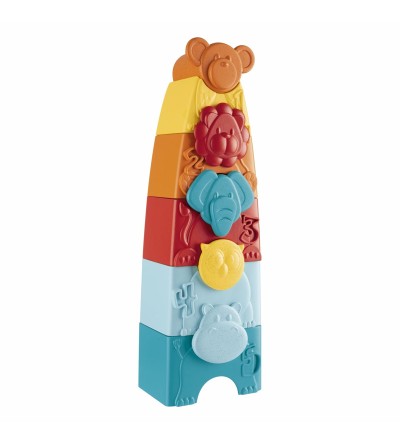 JUGUETE DE APILABLES 2 EN 1: Una divertida torre para construir apilando todos los animales, del más grande al más pequeño, y encajando también la cabeza correspondiente.