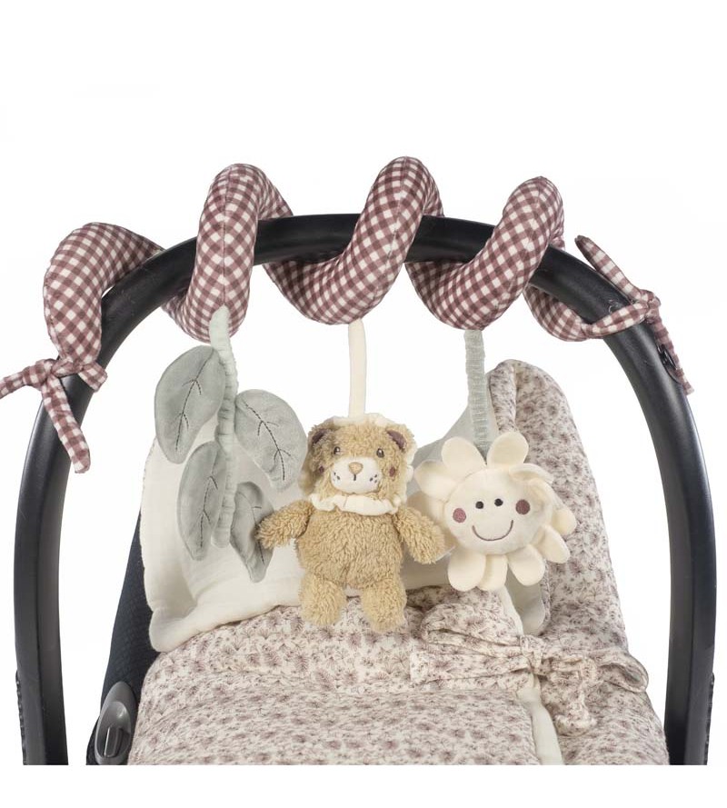 El juguete espiral con león de la colección Gala de Walking Mum es el accesorio perfecto para estimular y entretener a tu bebé. Diseñado con materiales ultrasuaves como velour y peluche, este juguete es ideal para colgar en el cochecito o la silla del auto, proporcionando horas de diversión y aprendizaje. Fácil de colocar y se adapta a diferentes superficies. Incluye colgantes con diferentes texturas, formas y sonidos para el desarrollo del bebé. Adorable diseño con tonos neutros y elegantes. Sin piezas pequeñas ni elementos peligrosos. Este juguete no solo fomenta la exploración y el desarrollo sensorial, sino que también decora con ternura el espacio de tu bebé. Walking Mum protege a tu bebé utilizando los mejores tejidos, libres de colorantes azoicos y sustancias nocivas para la salud. Cumple con la normativa europea EN-71 Seguridad de los juguetes +0 años.