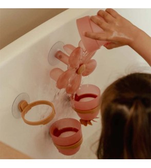 Este adorable conjunto incluye una estrella o flor giratoria con rueda, dos vasitos de baño y una taza vertedora para que los peques disfruten experimentando con el agua de mil maneras.
