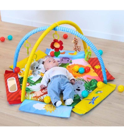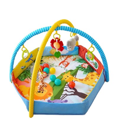 Esta alfombra de actividades estimula los sentidos de tu bebé con colores vivos, sonidos divertidos y una variedad de texturas. Incluye 30 pelotas alegres y coloridas guardadas en una pequeña red adorable, perfecta para agarrar, rodar o simplemente jugar con ellas.