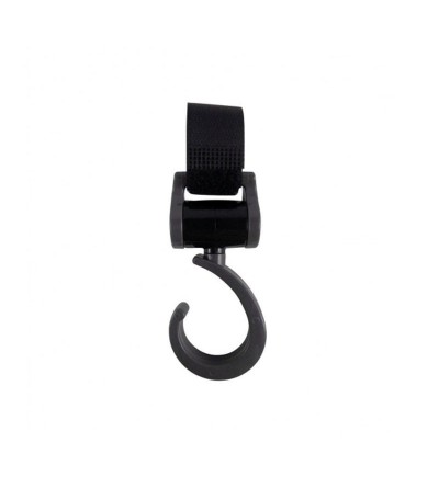 Gancho multiusos giratorio, para colgar bolsas, abrigos y artículos. Correa ajustable al manillar con velcro. Fácil instalación para sillas de paseo y carritos de bebé. Universal para todo tipo de marcas.