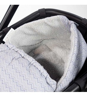 Material exterior con tratamiento waterpoof e interior en borreguito. Puedes moverlo del carro a la cuna sin incomodarlo ni perturbar sus dulces sueños. Gran calidad y mucho estilo.