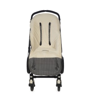 Funda Tarten de cuadros gris es ideal para cubrir la silla de paseo provista de saco. Interior en un cálido material tondusado para mantener a tu bebe calentito durante el paseo. El material tiene un tratamiento para repeler el agua.