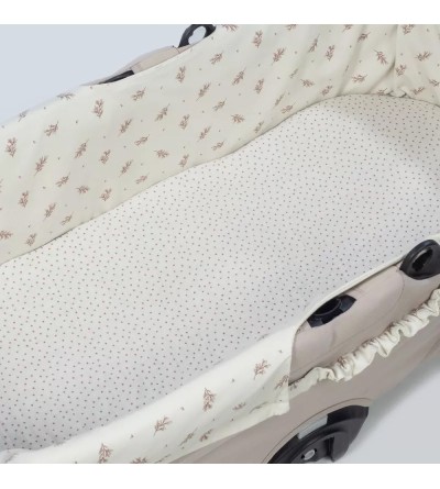 El cubre cuco con gomas y sábana bajera ajustable Mimosa de Walking Mum es el complemento perfecto para aportar suavidad y elegancia al capazo de tu bebé.