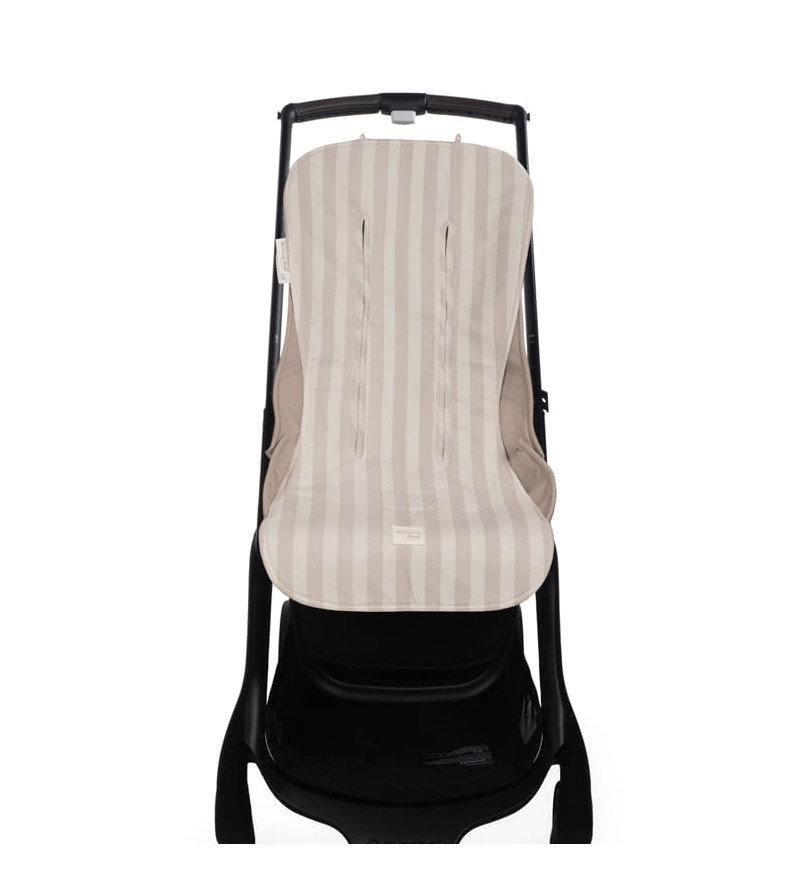 La colchoneta para silla de paseo Sintra beige con estampado de rayas está fabricado con un tejido exterior 100% algodón es el forro ideal para cubrir el asiento de tu bebé durante el verano, protegiendo su piel de las rozaduras e irritaciones del calor y además mantienes el tapizado original como nuevo.