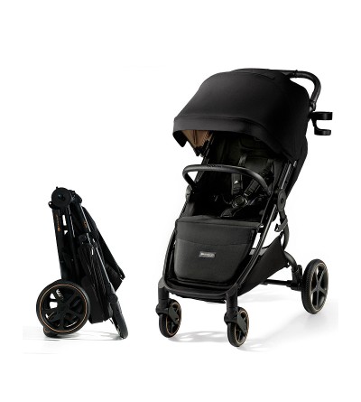 MITZY se pliega con una mano para que ocupe poco sitio y te la lleves de viaje. El sistema de plegado hacia dentro impide que la tela del asiento se ensucie durante el transporte.