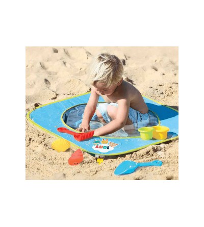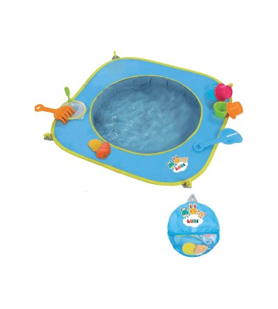 ¿Vais a la playa con los niños? ¡No te olvides de su piscina para la arena! Haz un hoyo de 10-12cm de profundidad en la arena, pon la piscina encima y rellénala de agua con el saco de tela incluido.