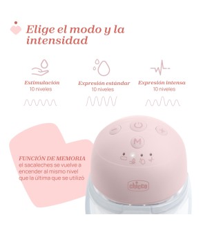 El extractor de leche portátil ofrece 3 modos: estimulación, extracción estándar y extracción intensa. 10 niveles de intensidad para cada modo te permiten personalizar mejor cada uso.