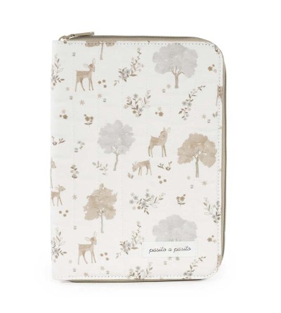 Este moderno y bonito libro de nacimiento para bebé Nara de Pasito a pasito elaborado en loneta de algodón 100% con un delicado estampado de ciervos y árboles en tonos neutros, es un funcional portadocumentos de diseño a juego con la bolsa de maternidad. Un complemento indispensable para llevar contigo a todas partes que te ayudará a tener ordenada toda la documentación y papeles médicos de tu bebé. También es una buena idea como libro donde puedes guardar documentos con progresos, datos importantes y todo lo que quieras conservar relacionado con tu bebé. Este libro portadocumentos esta elaborado en resistente y suave material, cuenta con bolsillos en cada lado y está forrado en el interior. Cuenta con un práctico cierre de cremallera para así guardar seguro el libro de nacimiento y todos los documentos de tu bebé. Acabados de calidad. Está fabricado con materiales de gran calidad, libres de colorantes azoicos, ftalatos y sustancias nocivas para la salud. Además se puede lavar a mano o a máquina a temperaturas de hasta 30º. Los productos para bebé de Pasito a Pasito cuentan con un diseño muy diferente a todas las demás. Sus colecciones se caracterizan por el trabajo al detallada, pensadas siempre desde un punto de vista práctico. Utilizan materiales de primera calidad para remarcar la elegancia y la armonía en cada una de sus piezas. Nuestros modelos son exclusivos y de estilo inconfundible, pensados en las madres actuales que gozan del buen gusto y que aprecian los detalles tanto como nosotros. Especificaciones: Materiales: 100% algodón. Medidas: 17X25X2 cm.