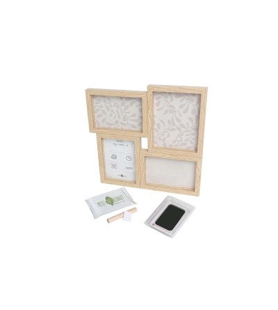 Los marcos cuentan con fondos reversibles que puedes personalizar, eligiendo entre un diseño de hojas o un color verde grisáceo sólido. Gracias a la tecnología "Smart Inkless Touch", podrás capturar las huellas del bebé de forma precisa y segura, sin que su piel entre en contacto con la tinta.