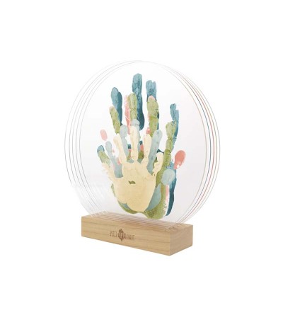 Family Colors es un marco transparente que muestra las huellas de 5 miembros de la familia y luego las combina para crear una obra de arte colorida y verdaderamente única.