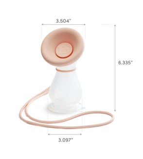 con una sola mano, le permite extraer leche en cualquier lugar, con facilidad. Tiene capacidad para hasta 4 onzas de leche materna y viene con un cordón que cuelga del cuello para mantenerlo en su lugar.