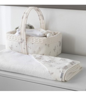 La cesta canastilla acolchada de Cambrass sirve para guardar los artículos de higiene del bebé.