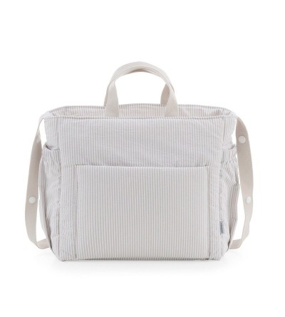 El Bolso Maternal Pack de Cambrass de gran amplitud con capacidad para guardar todo lo que necesitas para tu bebe. Su sistema de asas cortas lo hace útil tanto como bolso de mano o maletín así como de bandolera o incluso para el carro, ya que el asa larga dispone de clips para poder colgar del cochecito. El tejido interior (resinado) con el que está confeccionado el bolso cuenta con un acabado impermeable que sumado a su base rígida aporta estabilidad evitando que pierda su forma tanto lleno como vacío e incluso después del lavado. Este bolso cuenta con prácticos bolsillos interiores y exteriores para una perfecta organización de los accesorios. El cierre del bolso es con cremallera YKK de larga duración.