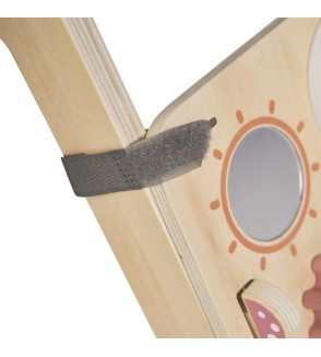 El diseño interactivo de este correpasillos bebé incluye juguetes sensoriales como puzles de formas, xilófono, espejo giratorio, engranajes, ábaco y bloques de madera. Estos elementos estimulan la coordinación motora, el aprendizaje de colores y formas, y el desarrollo sensorial. ¡Diversión y aprendizaje cada día!
