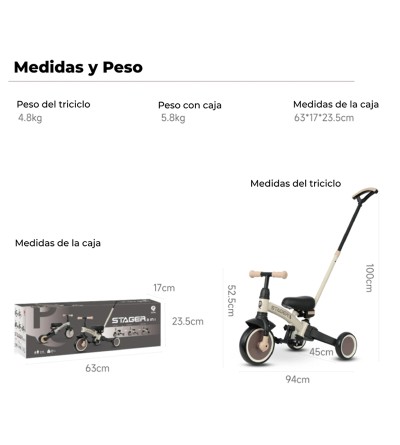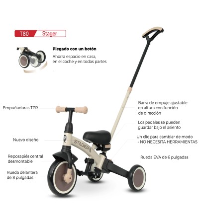 El estilo se une a la funcionalidad. Qplay Stager es un triciclo y bicicleta de equilibrio 3 en 1 que se puede utilizar para aprender a montar con un triciclo de empuje, un triciclo estándar y una bicicleta de equilibrio, para satisfacer las necesidades de los niños en diferentes etapas. Puede utilizarse de los 2 a los 6 años.