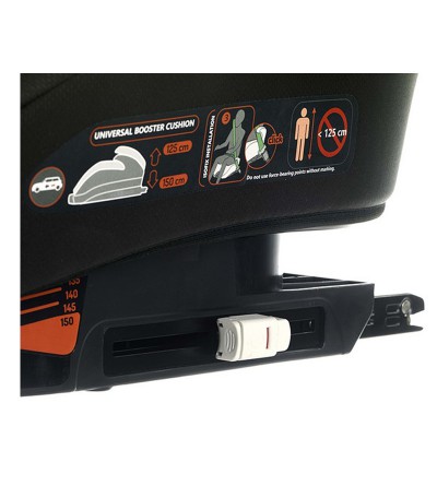 Instalación a favor de la marcha. El sistema de retención es el cinturón ABC del automóvil y la silla se puede anclar al coche con isofix, aunque la instalación también es permitida sin los anclajes isofix.